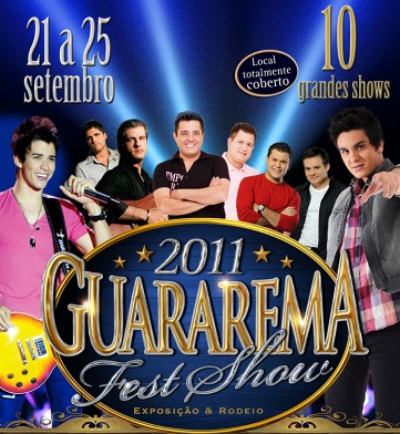 Vem aí o maior “FEST SHOW” de todos os tempos, De 21 á 25 de setembro, com Muita música e diverção . O GUARAREMA FEST SHOW terá 10 grandes shows, sendo 2 por dia, em um Local totalmente coberto, Com fazendinha para diversão das crianças, Parque de exposiçõe,e ampla praça de alimentação.